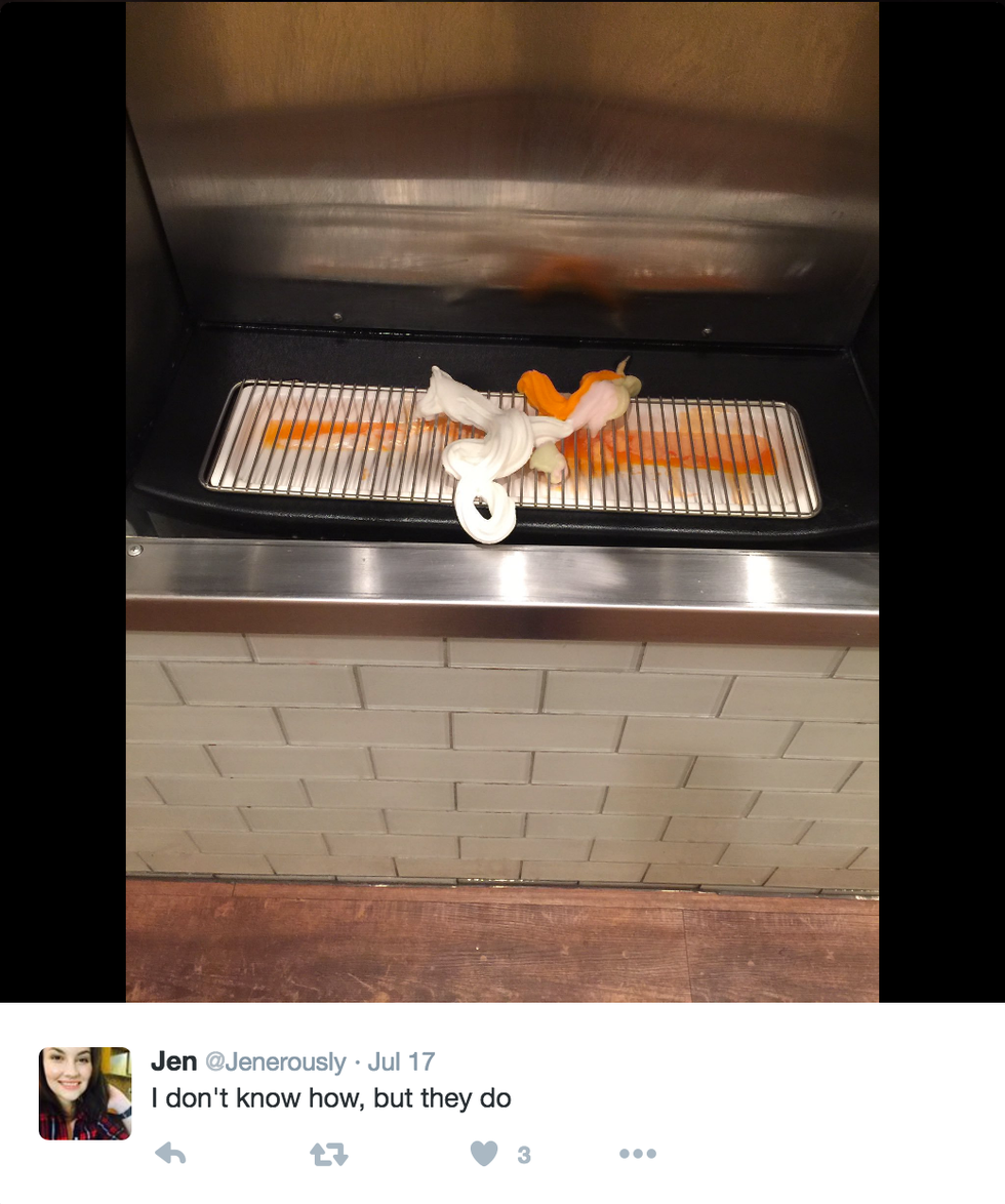 Okay, I’ve actually never done this (or the cherry stem stacking, for that matter) because I don’t have kids, but work with me. Oh, how I wish I could spray-bottle the little hands that reach into the rainbow sprinkles. Hint: If your child is shorter than the sneeze guard (that’s what the plane of glass is called, legit), then get the toppings for him or her, okay?