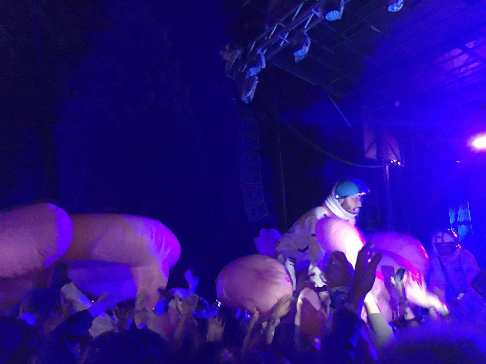 Sunday turned out to be the best night of the festival though, mostly in part because of STRFKR's performance. I had never seen them so I didn't know what to expect, but I don't think anything could have prepared me for how crazy their set would be. First they brought out an entourage of people wearing astronaut suits to dance in the background. Then those astronauts took how multiple confetti guns and started shooting confetti and lit up balloons into the audience. I thought it couldn't get any cooler, but then they brought out probably the two biggest inflatable flamingos I've ever seen and started crowd surfing on them.