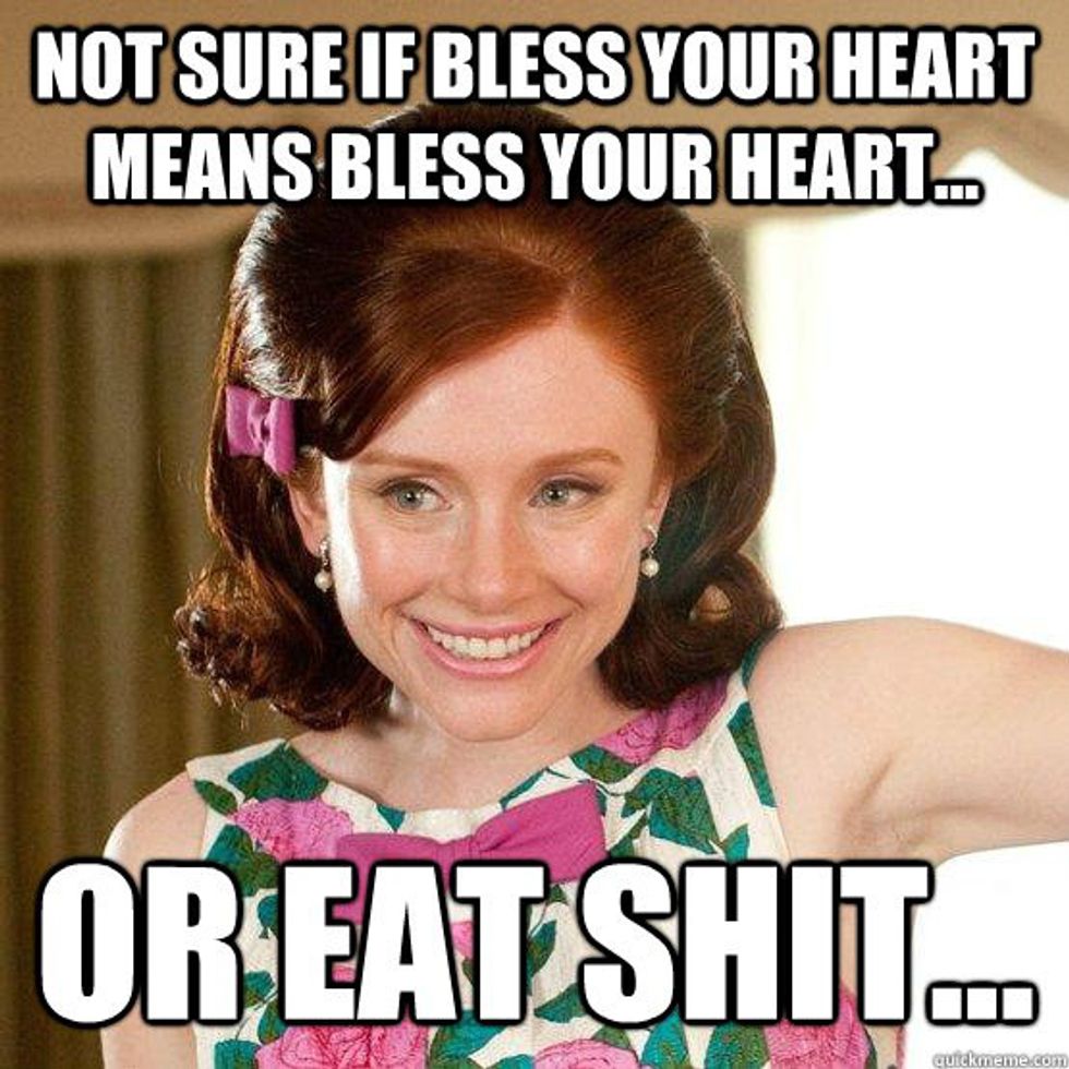 You can say someone is dumb as a brick, but if you throw bless their heart in there, it suddenly sounds much better. Like you genuinely just want the Lord to bless them because they are that bad off... they really need it.