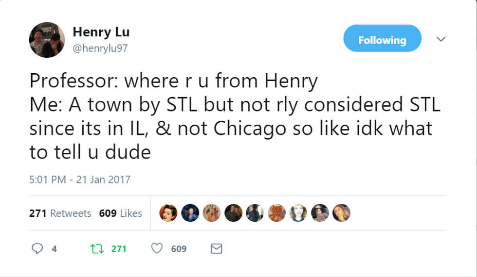 I live about 20 minutes outside the city of St. Louis, Missouri. When I say where I am from, I say in the St. Louis area. Many people respond, "But, that's Missouri?" I know but it's just easier to say that instead of saying, "I live in Illinois but not Chicago but it's closer to St. Louis but I actually don't live in St. Louis."
