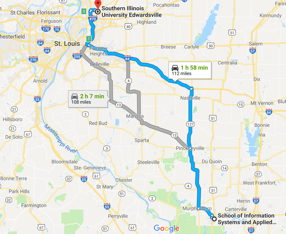 SIUE is located in Edwardsville (my hometown). SIUC is in Carbondale. No, we are not as south as Carbondale.