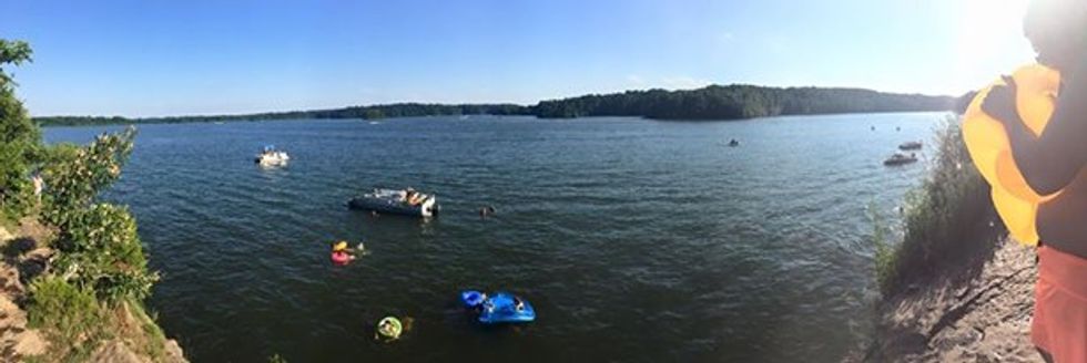 If you're feeling extra adventurous, Kinkaid Lake is the place for you. Located in Murphysboro, Illinois the lake that encompasses 2,750 acres of land, gives people endless amounts of options for fun. Offering things such as camping and hiking, Kinkaid Lake is well known for two things in particular. "The Spillway" is at one end of the lake and gives people a beautiful scenery of rushing waves down the waterfall to experience while sitting at the bottom where fishing and picnicking are available. The lake also offers the rush of adrenaline for the people out there looking for a thrill. After about a 25-30 minute walk through the beautiful trees and wildlife, the cliff jumping begins.