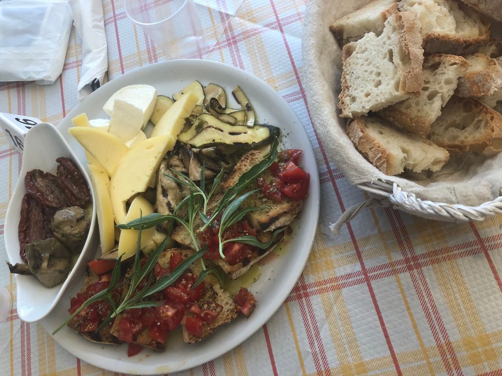 After we saw the Sanctuary of Monte Sant'Angelo sul Gargano, we ate a traditional Italian "aperitivo" (appetizer) of sundried tomatoes, focaccia bread, buffalo mozzarella, grilled vegetables and artichoke hearts for lunch. You can find many dishes like this served all around Italy with different variations of vegetables, meats and cheeses. Needless to say, It was AMAZING.