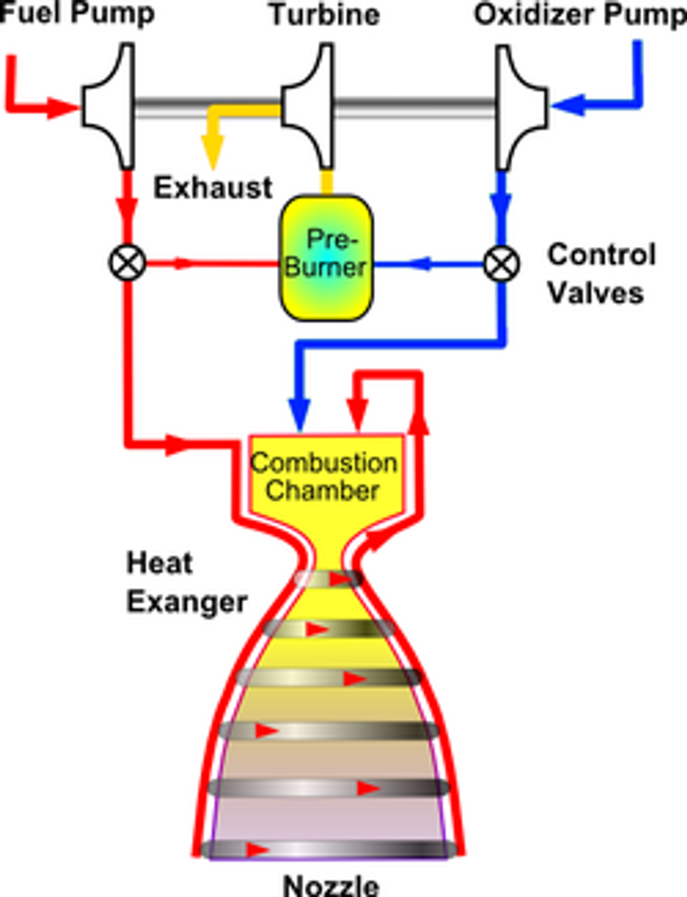 The Merlin engine is designed to be re-used and recovered, therefore it acts in a gas-generator power cycle with RP-1 and liquid oxygen as rocket propellant. A gas generator cycle burns some of its propellant and then uses its resulting gas to power the engine's pumps.
