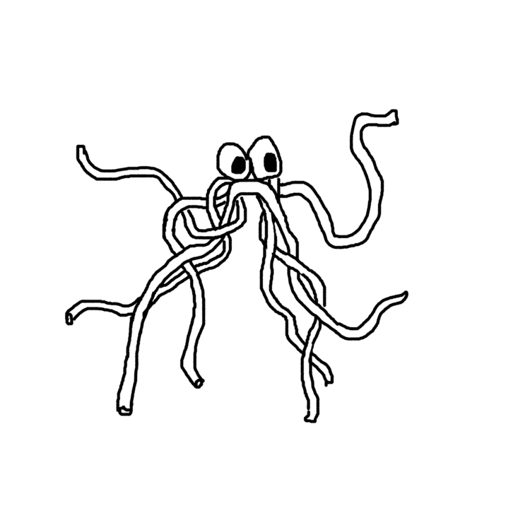 He opened his coat and pulled out two clear containers – each containing spaghetti with googly eyes. They were not only alive, but also seemed unsettled and rowdy – squirming all over pretty aggressively.