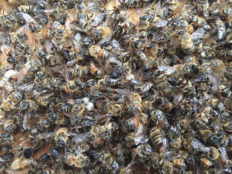 Only a snapshot of the many bees who died in the aerial spray.
