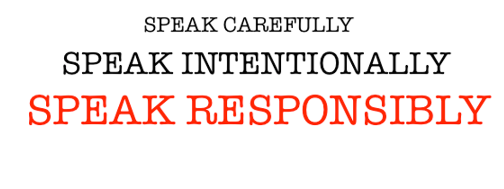 People talk. A lot. Studies show that on average, women speak around 20,000 words a day while men speak about 7,000 words a day. With everyone doing so much talking, sometimes it's hard to be aware of what we are actually saying and how it can affect others. I think it's time we change that. From now on, I urge everyone to be cautious of their word choice and start speaking responsibly.