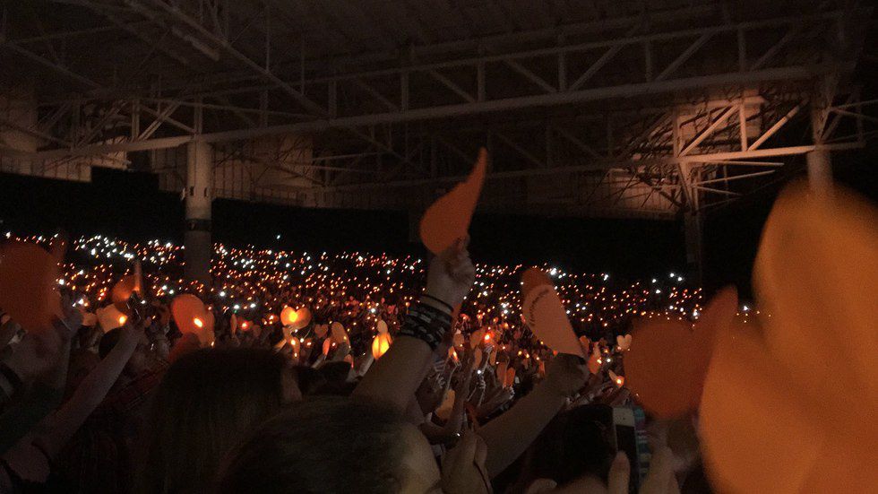 A lot of these bigger artists have fan bases that create fan projects for the tour. I've gone to shows where people hold up orange hearts during songs. I've seen Gillette Stadium light up with the colors of the rainbow. It takes a lot of time and effort to get these going. Cutting out signs, reaching the masses, writing out messages and transporting the materials is a lot of work. Fans do it out of the kindness of their heart. Each time I see a project at a show I go to, I'm blown away.