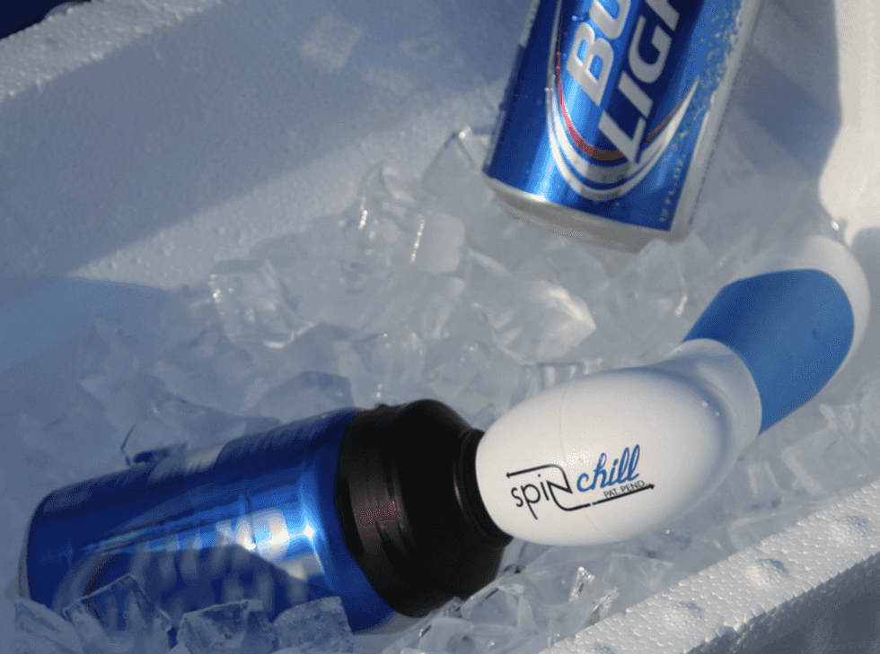 SpinChill is a pocket size device that attaches onto your can and spins the beer in ice. It adds convection, which drastically increases the rate of heat transfer. This mechanism cools the drink 10 times faster than sitting in ice alone. The SpinChill also works on soda cans as well as wine and beer bottles.