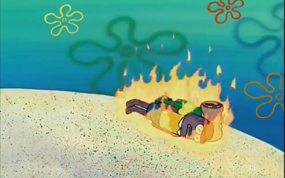 It's the night before your most stressful final and if your brain were a picture, it would be this one. All of the little Spongebobs running around, freaking out, and the fire accurately depict a college student's brain the night before their most mentally taxing exam.