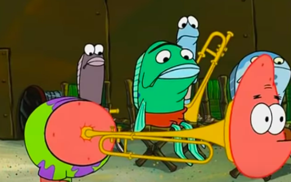 Spongebob and the gang are trying to start a band. Patrick goes outside and seems to get in a fight with the noise that is heard. He pokes his head in the door and shyly says "Whoever's the owner of the white sedan, you left your lights on." He then proceeds to walk back to his seat and every-time he makes a step the horn that is now stuck in his throat makes a whomp whomp whomp whomp whomp and when he sits down we get a final wHhhhHHhHOOoOooommmMmMPppppp. It gets me every-time.
