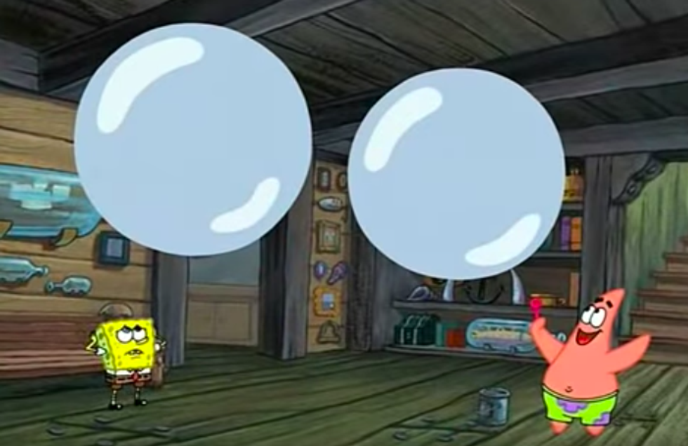 Patrick and Spongebob are supposed to be at Mr.Krabs house painting the walls, but not harming any of his items on the wall or removing them. So Spongebob is painting and accidentally blows a pain bubble and freaks out because it might pop! He exclaims "what could be worse than a giant paint bubble?" and Patrick rebuttals "Two paint bubbles!" and Spongebob begins to scream! It comes so quickly and is such a knee slapper!
