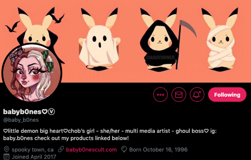 A spooky resin creator, Kayla (twitter handle @flamingobonez) creates cute resin skulls, coffin keepsake boxes, and creepy and cute pet name tags for the little creature in your life.
