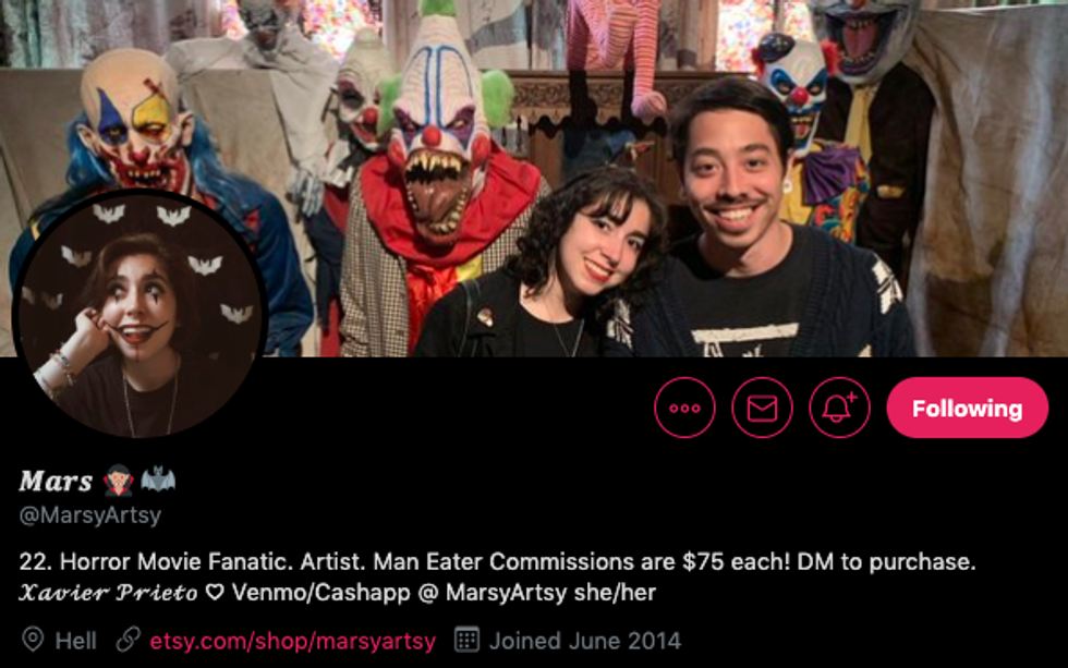 Another spooky and talented artist, Mars is most known for her Man Eater commissioned portraits (including Spooky Man Eaters!) and her carefree attitude. She just exerts Big Ghoul Energy.