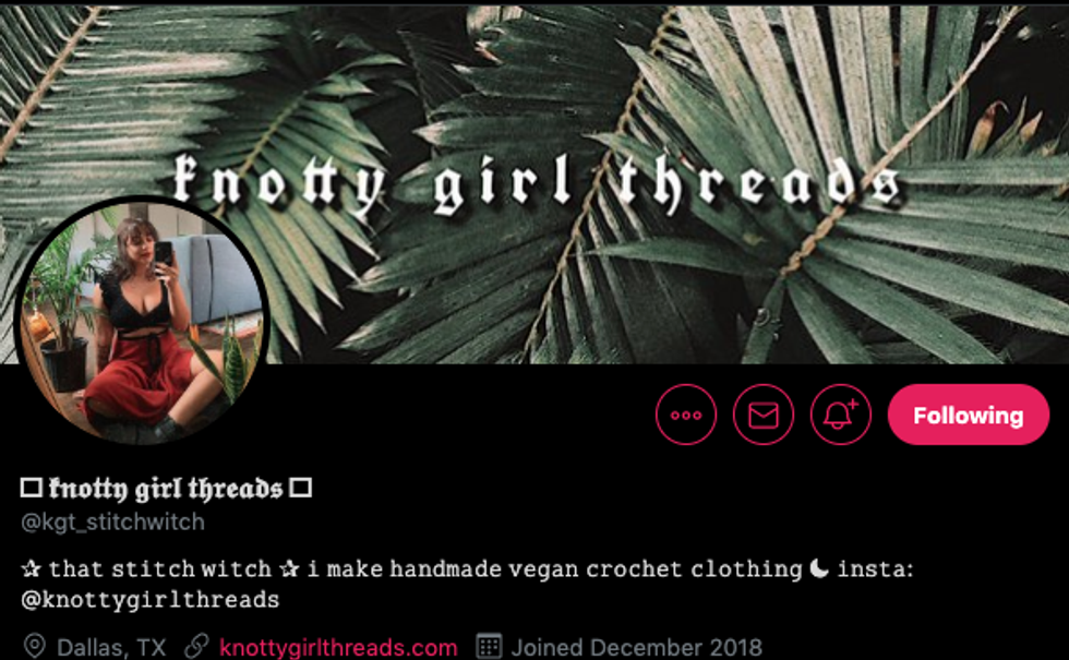 Did you need a velvet crocheted top with a beautiful crystal in the middle? Yes? Well, Knotty Girl Threads can create custom vegan crocheted clothing for every witch and ghoul in need! Bonus: her feed is full of gorgeous plants and her kitty, Oliver!