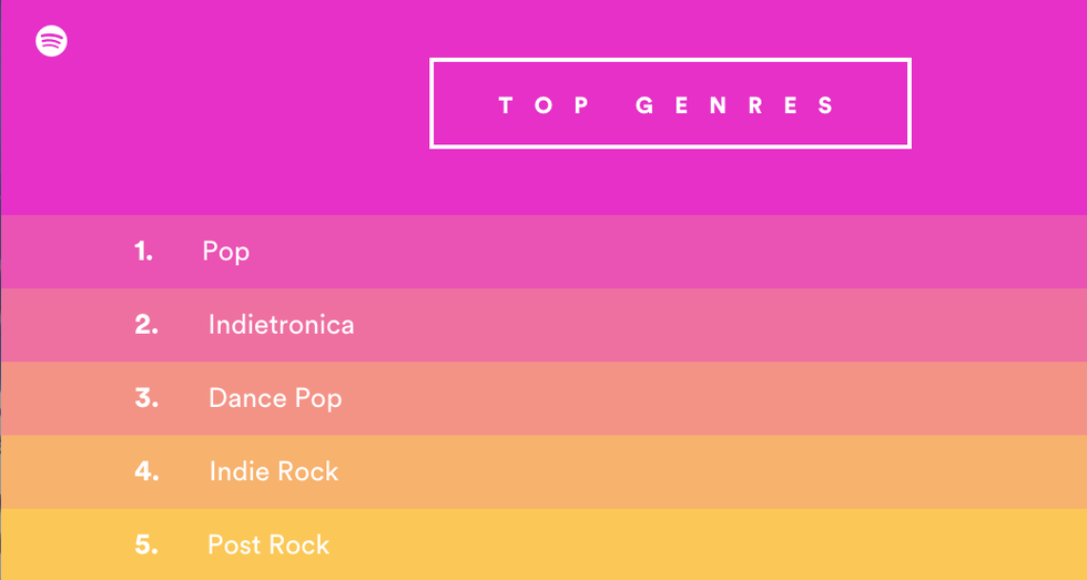 The Spotify Year in Review brings out the worst in us. You would think it is just a fun tool to look back on all of the musical deliciousness from 2015, but in reality it is used as ammunition in the war of who is the most indie alt babe (obviously me). I take equal amounts of pride and embarrassment in my Year in Review so this analysis is strictly educational. I also think that the graphics are really kick ass and pretty. Without further ado (or stories of how I fight for being the most pretentious person in the room) I give you my analysis of my year in review.