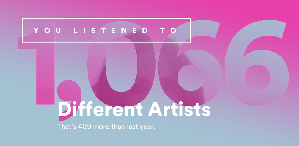 Here's the rundown: music is amazing and I wish I could be streaming it all the time in a tiny microchip in my brain. I love listening to new stuff, but there is so much music out there that I get really overwhelmed and need to lie down and listen to Sam Smith sometimes. My goal for next year is to listen to at least 2,000 artists and over 3,000 new tracks, but that probably means I will be listening to 500 hours worth of music. I am okay with that. Now go and check out your Year in Review and get into a fight with your significant other about who has more indie cred.