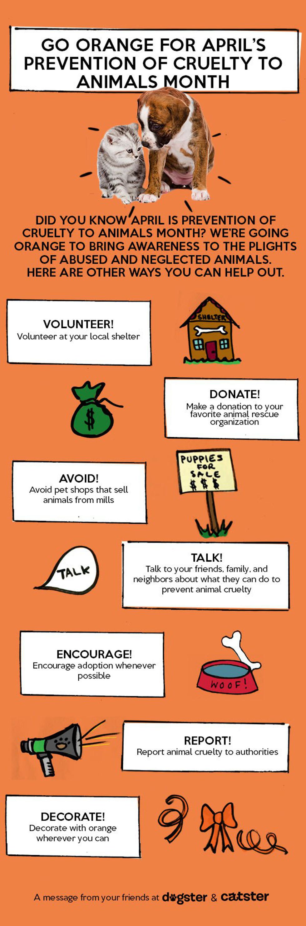 Take the pledge and celebrate the month in style! The ASPCA’s brand color is orange, so it only makes sense to “go orange” to raise awareness and help promote cat and dog rescue. Of course we think everyone ought to be thinking about preventing cruelty to animals every month, but we’re also into raising awareness any way possible, so we’re going orange in April!