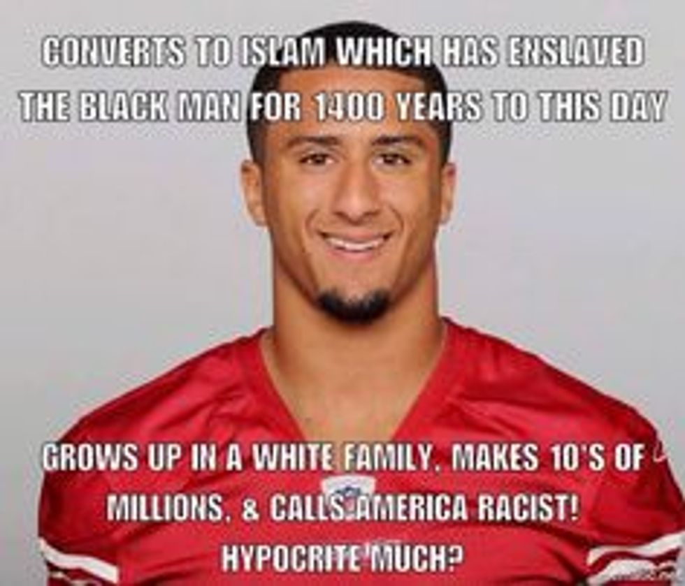 The cover picture was of Colin Kaepernick who we all should know does not play for the Braves. Because that’s a baseball team. Yet I’ve seen the article shared countless times by people on my social media pages and have read multiple racist comments keyboard screaming about something that is a blatant lie.
