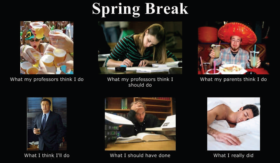 Expectation: Leaving your cold college town to get away to warmer weather.