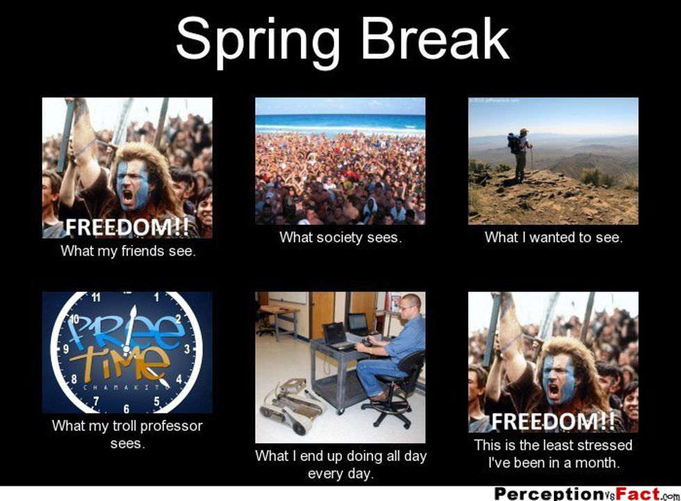 Even though we spend all semester looking forward to it, spring break is the worst and best idea ever. The students and teachers all get a break, but if there’s work to be done. Sadly, most of it’s not happening and it just turns into stress for when you get back to school. I’m not saying get rid of spring break, but lightening up in the homework would help. No one wants the break to end, not students, not teachers, certainly not family members that miss those students, so let's give spring break a break.