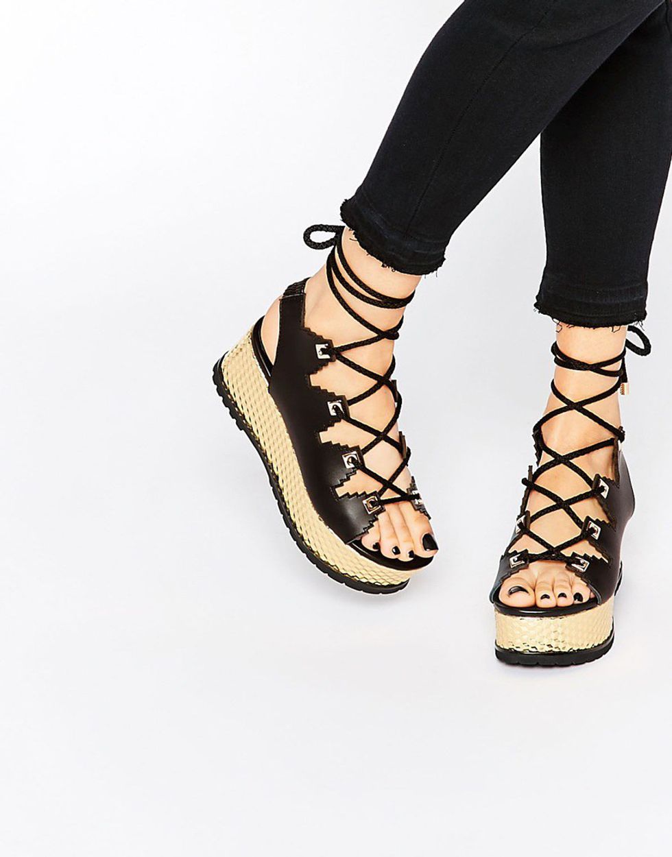 A big trendsetting shoe this spring is the flatform. It's the best of both worlds. You get the height of a platform, but it has a flat base. This can be in a sandal, sneaker, espadrille. You name it, and there is probably a flatform version of it.