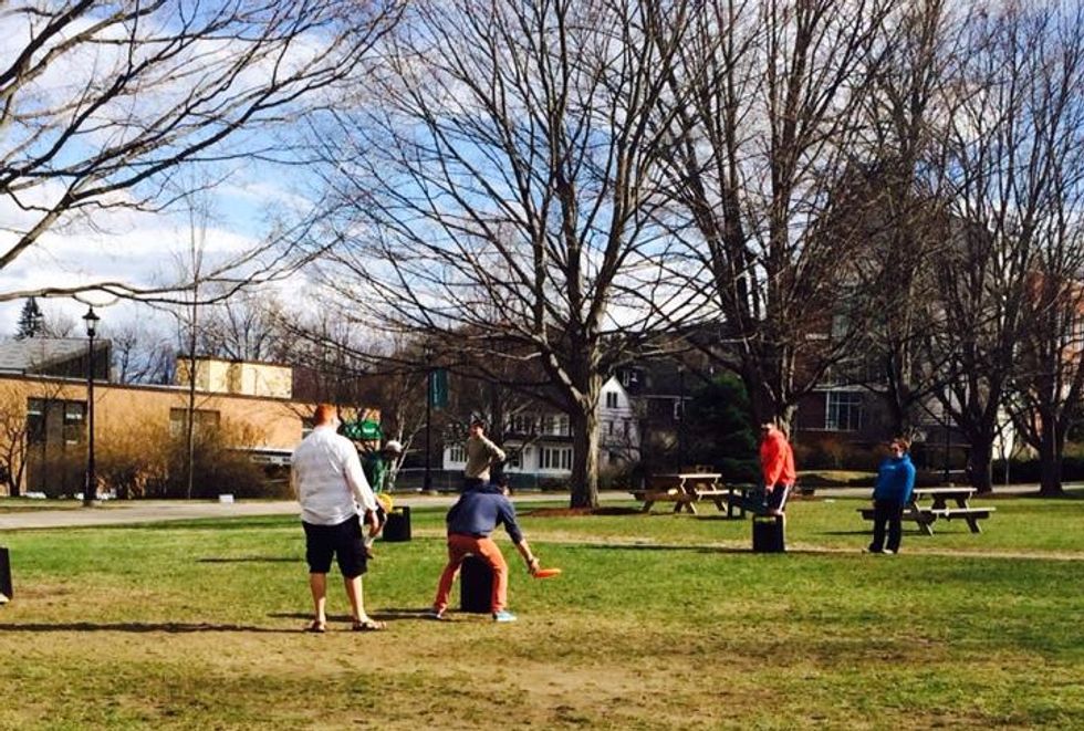 4. You will have to watch out for the frisbees, footballs and baseballs that are flying around as you walk past Mary Lyon Lawn.