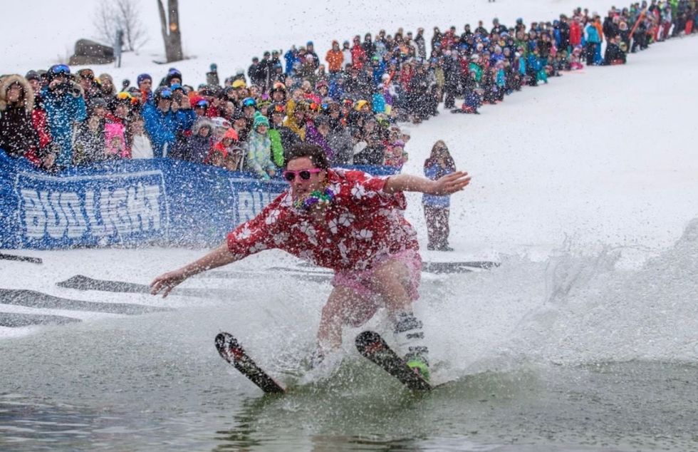 People enjoyed Vermont's finest ales and danced to the beat of Bob Marley type songs some featuring Marley himself all afternoon long. In addition to the music, the activities are very fun. Also on March 24, there was the very entertaining 2018 Bud Light Sink or Skim pond skim contest derby. What's great about this is that everyone can enjoy the music and activities then hop on the chair lift and get back to skiing thereafter!