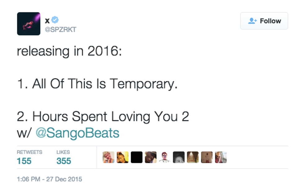 Like many people, music is a huge part of who I am. Now, I'm not the most musically talented, but I have a huge appreciation for it and I thought that I'd share two artists who lay pretty low, but are well worth the listen. I especially recommend the "Hours Spent Loving You" EP by both artists SPZRKT (Spazzy-Rocket) and Sango. It was released on March 8, 2015, but it's remained my go-to ever since it was released. It's something that I put on repeat when I lock myself in the library for hours on end to get things done, unwind on lazy Sundays, and get ready in the morning. I'm not the most familiar with them, but I'll do my best to do these amazing artists justice in this quick run-down of what I consider to be one of my top three favorite EPs.