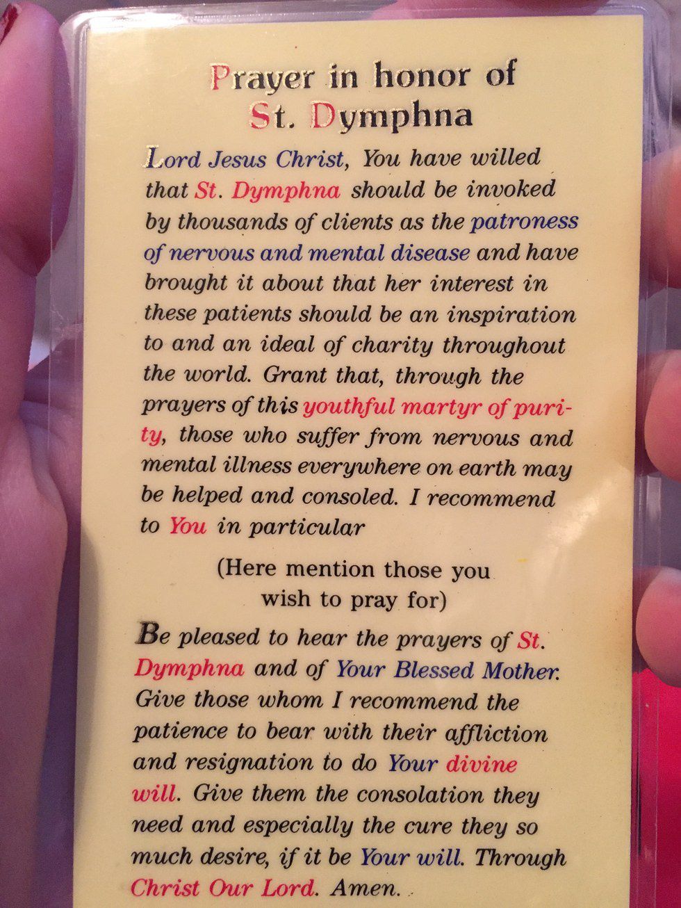 To me, Saint Dymphna is someone who I will always pray to. I am so happy I got that sign that one day in San Diego. Everything happens for a reason and I truly believe that day she wanted me to discover her so she could help me through everything I deal with. For that, I am so thankful.