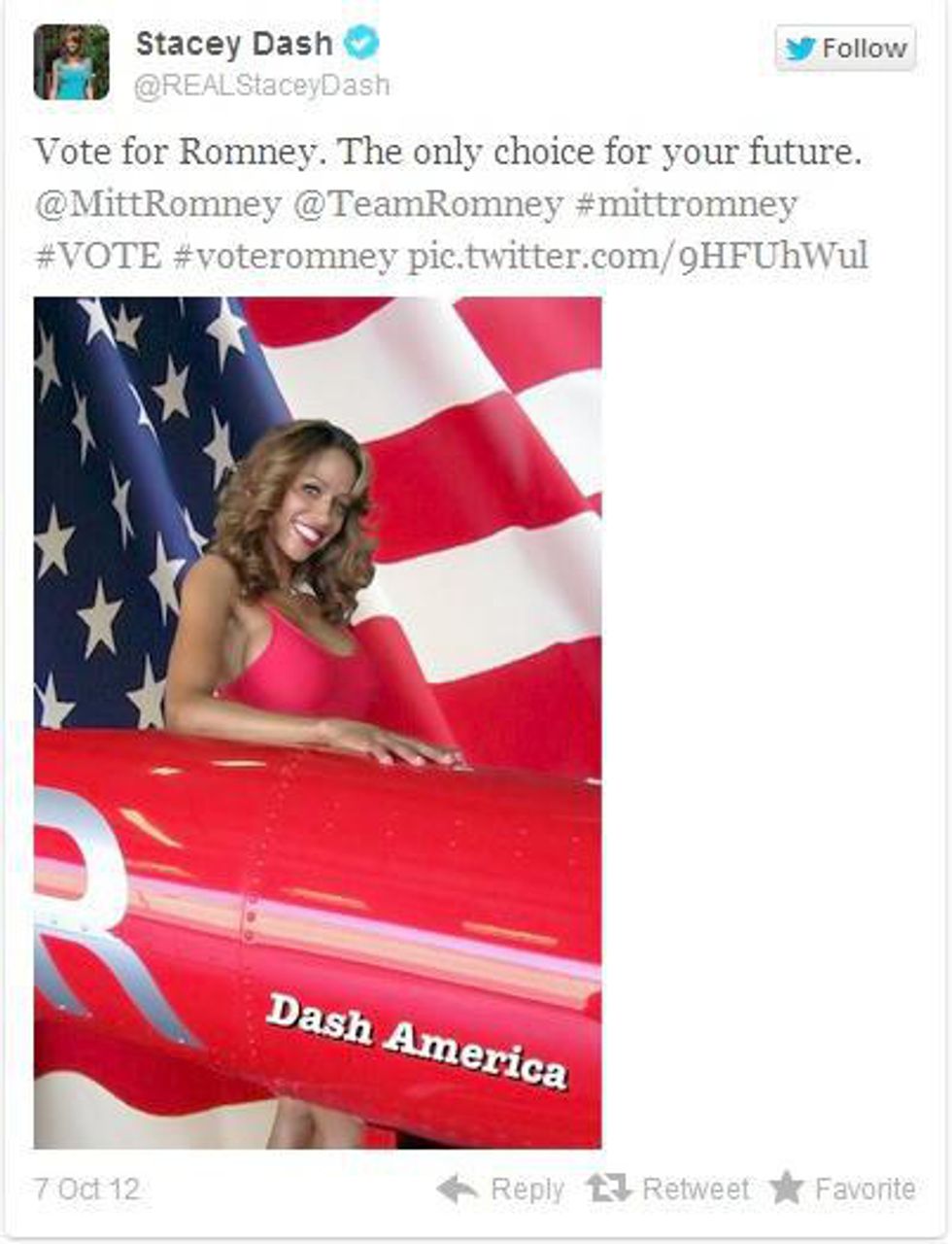 With one tweet, she became the most prominent face of Black Conservatism. Being a minority inside of a minority, there isn't much representation in mainstream media. Historically, black people tend to be more liberal, so to have a spokesperson for a subset of the American community that the Romney campaign probably had trouble reaching must have seemed quite enticing to them. I understand why that endorsement happened and how both parties benefited from it. The Romney campaign got insight into the black community, and Stacey Dash found a way to become relevant again. Everybody wins.