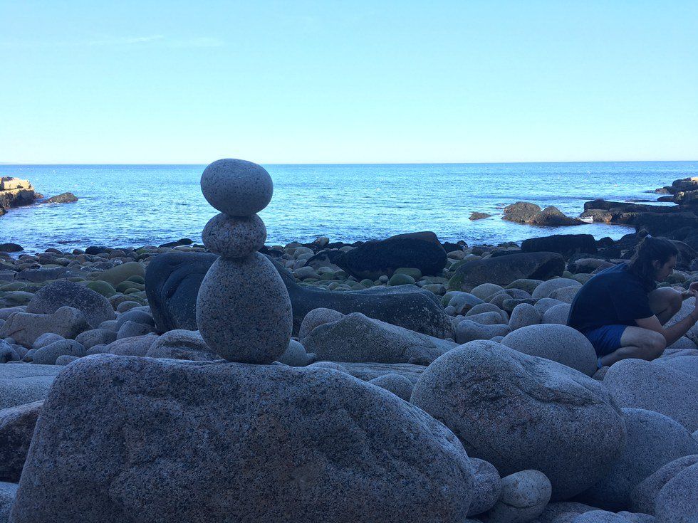 After thousands of steps and sights, one of our friends asked if we would like to stack some rocks. Confused, yet hedged with the tendrils of curiosity we said yes. He had been there the year before and remembered which turns to take, where to leave our car behind, and why we needed to go. He left us with little explanation of what exactly we would be doing, where we would be doing it and why we we should trust him that this adventure was worth our time. After several minutes of trekking along the cliffs that cloaked the ocean's breaks, he found what we were looking for. Carved into the face of the cliff was a modest beach coated in layers of spherical rocks: giant, circular, oval, elliptical, oblique shaped rocks. We carefully climbed down the fifty-foot cliffs and hopped from boulder to boulder, feeling the rubber of our shoes bend atop their rounded summits as the ocean breeze swelled within our noses and chilled our skin.