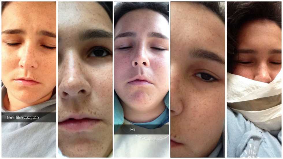 The next time I opened my eyes, the procedure was over and the nice lady who stabbed me a couple times earlier was helping me into a wheelchair. I have no recollection of the trip between the operation room and my sister's car, but I was evidently a real hoot. I continued using my normal vocabulary (read: big words that are not all necessarily conversational) but sounded like Jack Sparrow, so that's funny, I guess. I remember wondering when they put my sweatshirt back on, but I was thankful to have it. Fortunately for you, I also thought to myself that I should probably take a Snapchat for posterity's sake before conking out. This is what that produced.