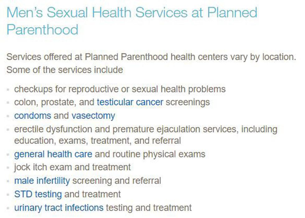 What I AM going to talk about is all of the fantastic services that will be denied to people should Planned Parenthood actually be defunded that are not and SHOULD NOT be controversial.