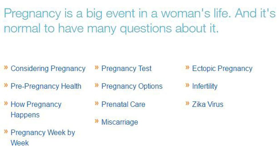 They not only explain in full detail how pregnancy happens, but they also go into a full week-by-week explanation as to what happens as a baby develops (which is super cool. Take a look here if you're interested!).Planned Parenthood also goes into the health aspect of being pregnant, how to test if you're pregnant (both with the clinic and without), how to handle things such as infertility, ectopic pregnancies, and miscarriages.