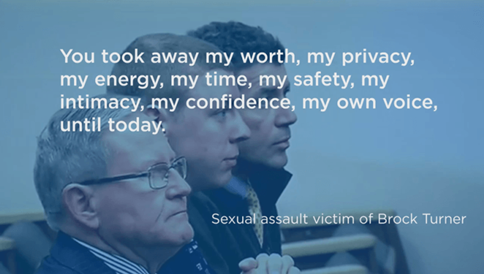 America, it is time for us to stop victim blaming and shaming. It is time for us to stop asking what she was wearing, how much she had to drink, what she said to make him think it was consensual, whom she slept with in the past. Stop saying it's a damn shame she ruined his life, she lied, but he was such a good swimmer, we are being too harsh on him. His life does not mean more than his victim's. Stop putting the public at risk by letting these predators walk free. It is time to respect the survivors. Listen to our stories. Don't make us hide.