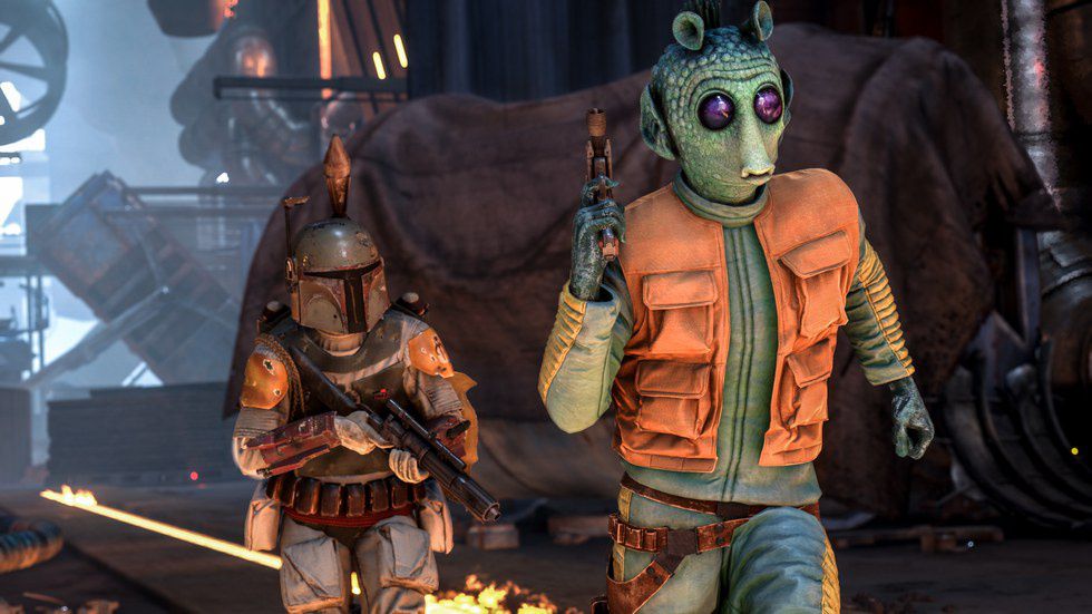 “Battlefront’s” first expansion, dubbed “The Outer Rim,” was healthy with improvements and additions, including a new game mode, and additional maps to a number of the original modes. Outer Rim also introduced the Jabba Contracts, a new feature that tasks the player with various challenges to unlock bonus weapons. Two new characters were added to the Heroes roster, as well. Best part? You can play as Greedo and reverse the fate of Han Solo in battle!