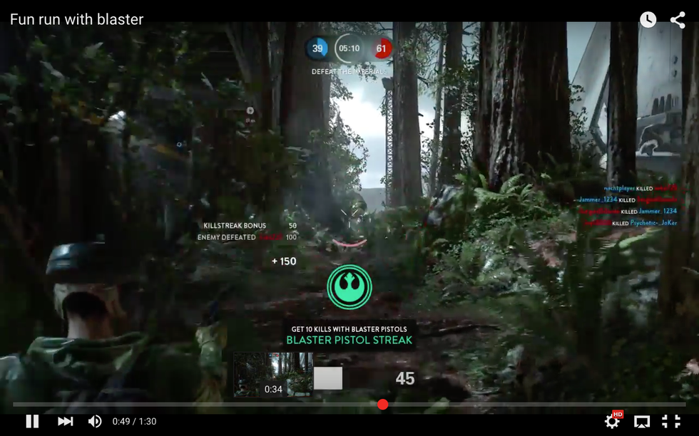 There are about eleven weapons available at the moment, although that is sure to change with the December 8 free downloadable content patch of the Battle of Jakku. There are also four major DLC’s planned to be released although we know no details about them. The weapons we have access to now cannot be customized in any way. I believe that this makes the game better because it forces the player to be strategic in their weapons choices depending on the terrain and their play-style. There is one, short-range, shotgun type blaster (of Jawa origin in the "Star Wars" films), three medium blaster, three heavy blasters, one sniper type blaster and finally three hand blasters. Each has special attributes, some shoot faster but do less damage, others are slower but have much better range and damage. It is up to the player which weapon suits them best in different encounters. The maps themselves have long and short range areas more suited to different kinds of blaster-play. In this way, no one single weapon dominates the game, although the Han Solo hand blaster that comes with the deluxe and limited editions has very good versatility.