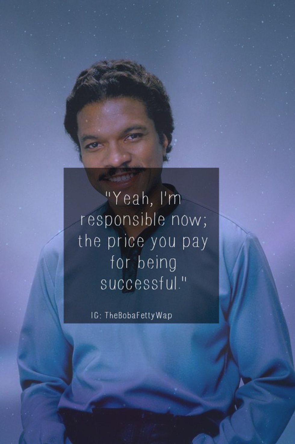 6. "Yeah, I'm responsible now; the price you pay for being successful." - Lando Calrissian