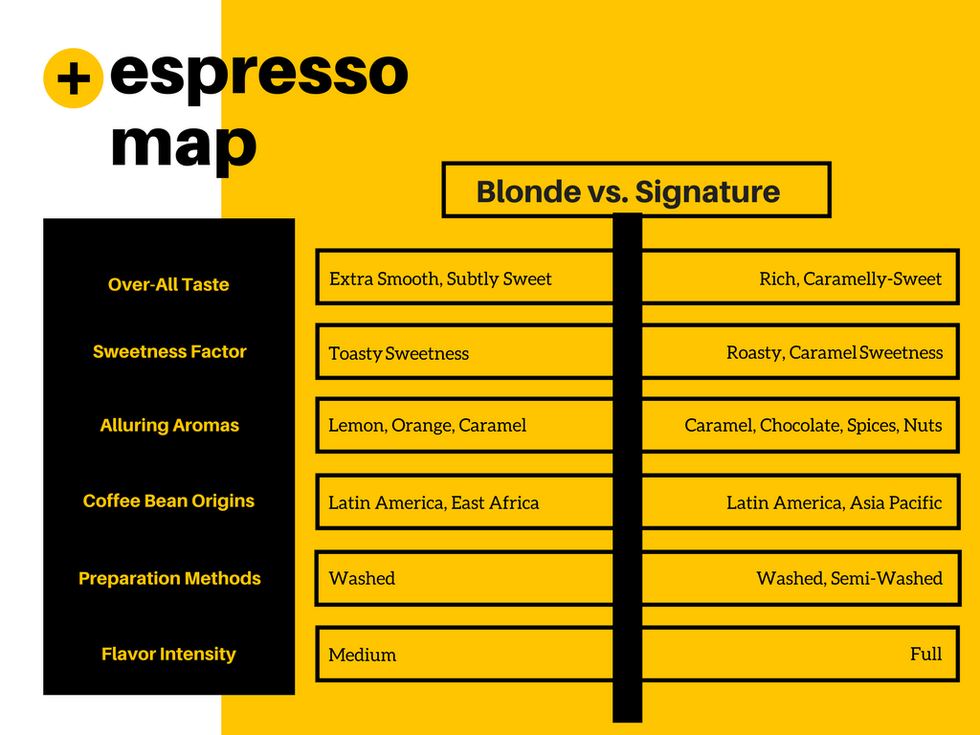 To compare Starbucks’ Traditional espresso and Blonde espresso, I created a handy-dandy chart to better show the differences between the two amazing espressos.