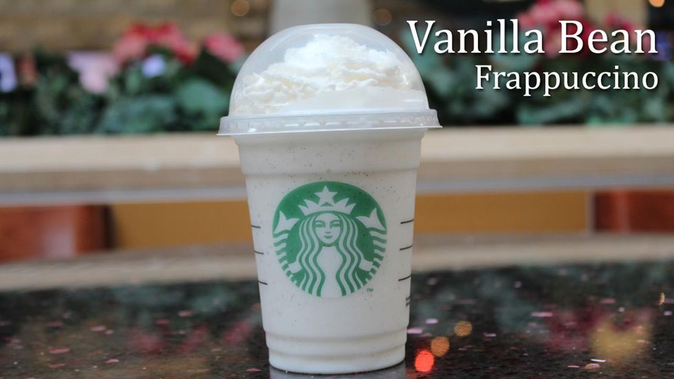 If you like the taste of a milkshake, you'll like a vanilla bean frappucino. On Starbucks' website, they describe the vanilla bean as, a "rich and creamy blend of vanilla bean, milk and ice topped with whipped cream takes va-va-vanilla flavor to another level." But don't think you have to stop at just a vanilla flavor. Want to spice things up? Add a flavored syrup or drizzle - you can add caramel, chocolate, raspberry, peach, peppermint, or whatever else is in season! The options are limitless.