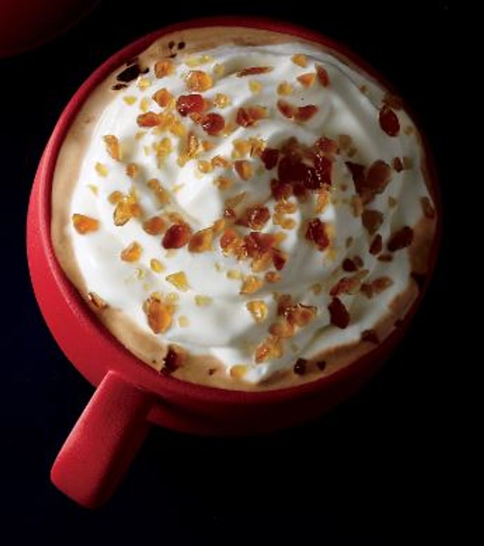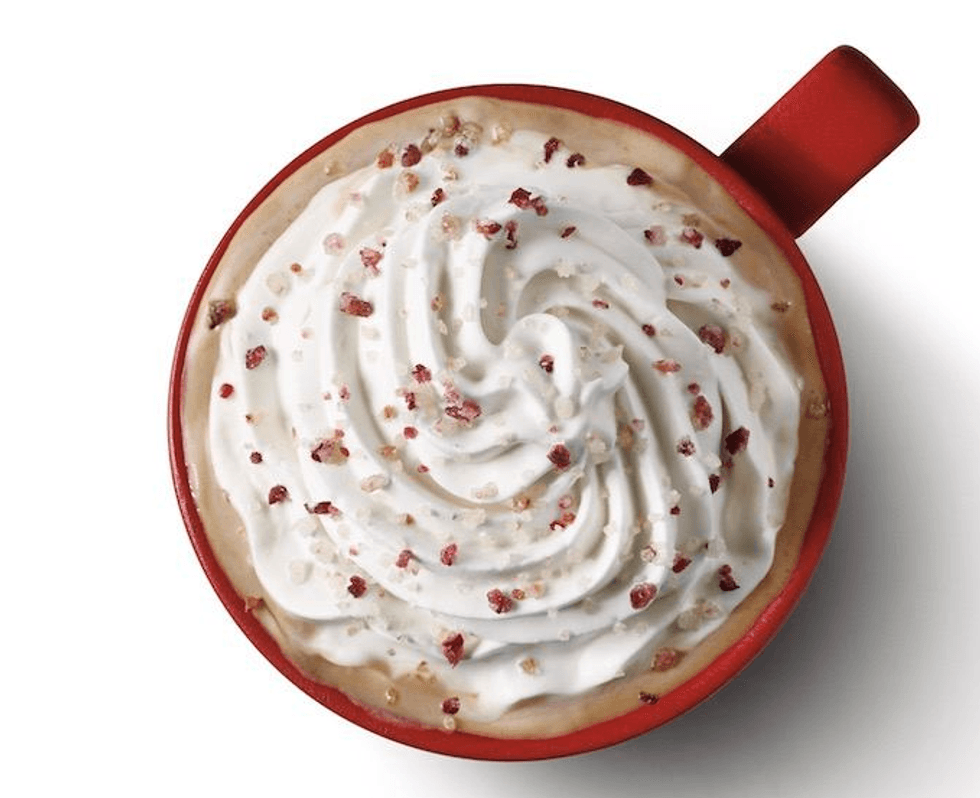 If you aren't much of a rich chocolate fan, this is the mocha for you. The white chocolate gives it much more of a sweet, yet subtle taste. It is made with a rich espresso and caramelized with white chocolate mocha sauce and steamed milk. As you can guess, it is topped with whipped cream and candied cranberry sugar.
