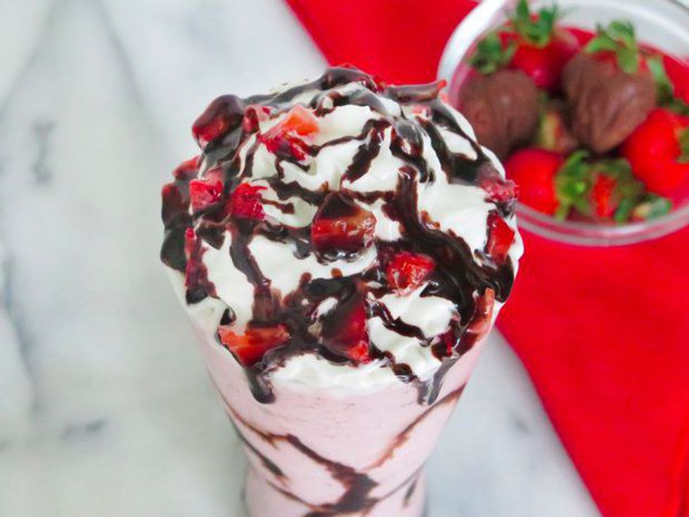 This frappuccino tastes like the classic dessert, chocolate dipped strawberries. If you're in the mood for something sweet and fruity, then ask your barista for a strawberries and cream frappuccino, and add java chips and a mocha drizzle on top.