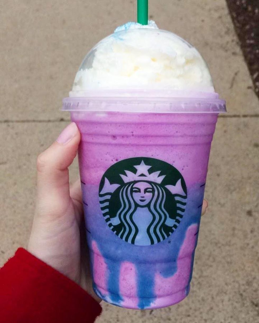 By now, you surely must of heard of the latest trend in the Starbucks coffee community, the Unicorn Frappuccino. It's a brightly colored purple drink that changes to pink when you stir it, and is decorated with pink and purple sprinkles and a blue sour syrup throughout. Starbucks came out with the drink on April 19th, and will only have it until the 23rd of April.
