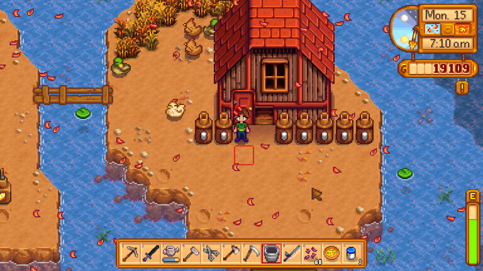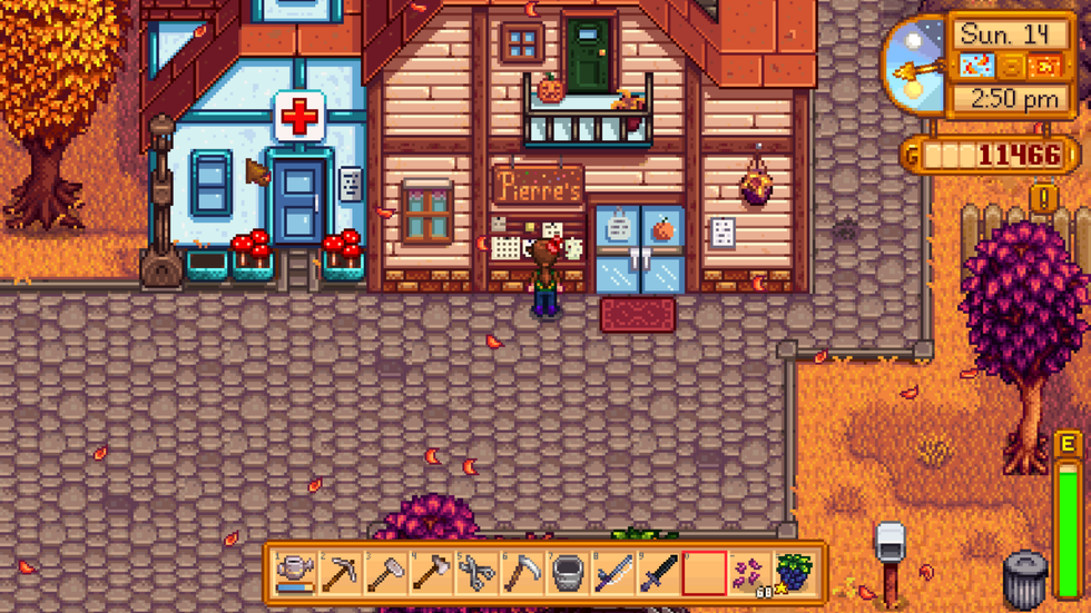 If I have time and nothing else planned, I'll end up going into the mines for the rest of the day. In the mines there's slimes and other monsters that you'll need to defeat to protect yourself. But it's worth it! You can get stuff to upgrade buildings or tools, to get more money, or items the villagers might like so you can make friends (or get a future wife/husband).
