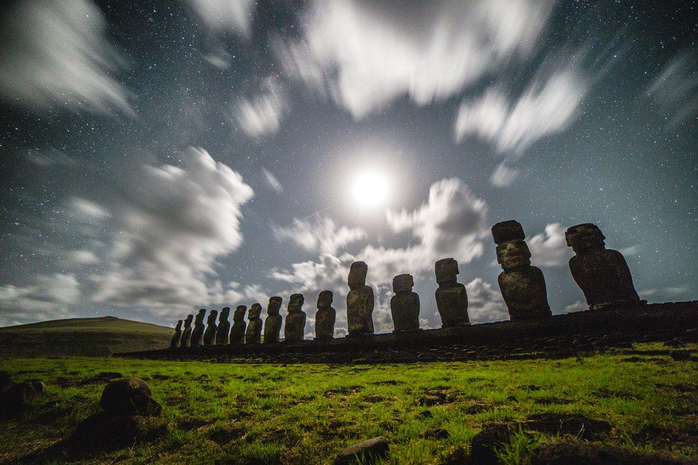 The amazing thing about a moonlit landscape is that details are so clear and easy to capture. The down side is that there are far fewer stars.Showing up to the Chilean desert with the world's clearest skies and a full moon is pretty disappointing, but it makes Easter Island far more dramatic.