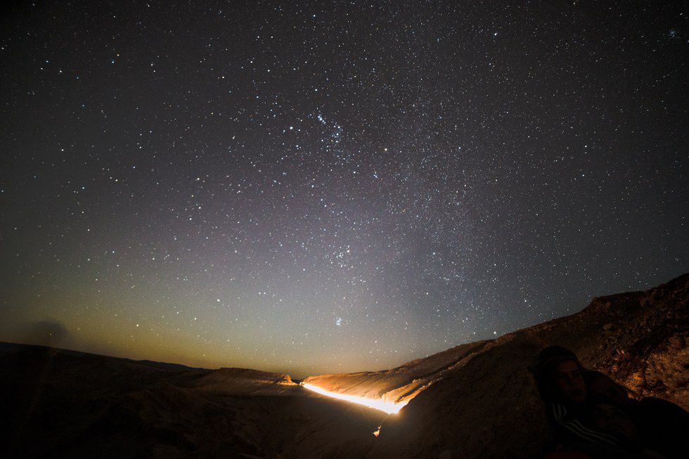 A long exposure never hurt anyone, and combined with stars it can be magnificent. Cars also have the amazing ability of highlighting the land for a perfectly small amount of time, just enough to illuminate the subject.