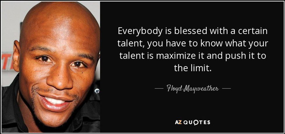 The most successful people on this planet (Zuckerberg, Gates, Bolt, Oprah) all found the one thing they're talented at and maximized it to the point that no one could compete with them. They had a vision, and they worked hard every day until that vision became a reality. How many of us even try to do something like that? How much talent gets wasted because we give up on the first try or because we focus on the wrong things? Do your best to stick to your plan, and chances are you'll surprise yourself.
