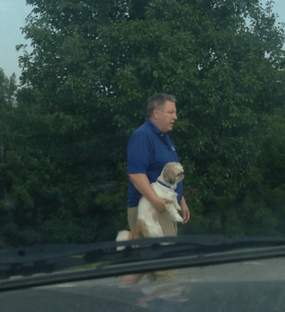After my mom and dad's divorce, we were tight on money. I'd never really spend money on things I didn't need, and wouldn't ask for money unless it was absolutely necessary. When Mom was dating Tom, my stepdad, we all went to a football game. Right before halftime, Tom handed me a twenty dollar bill and said, "Why don't you go get you and the little one's whatever you want from the concession stand?" It wasn't really a question up for debate, but a statement. I just remember my jaw dropping a little and looking at my mom, to which she just smiled and nodded. My siblings and I were on cloud nine, and so so thankful. That memory always sticks out to me when Tom says, "Money's the easy part." meaning: Let's figure out the other stuff first, money isn't as important. I don't know if it's something in the water, but Tom and I are a lot alike. We are both math geniuses, diehard K-State fans, and quite tech-savvy. Okay, actually I'm not any of those things, but we do have the exact same sense of humor. That's a tried-and-true fact, which has been proven many times during family game nights of Apples To Apples. We just always seem to pick each other's cards without trying. It must run in the family! Not only do we have the same sense of humor, we're both really funny. For instance, Tom once told me that if Mom asks him to hold her purse, he holds it under his arm like a football to make it manly... I guess the same thing goes for holding my dog.