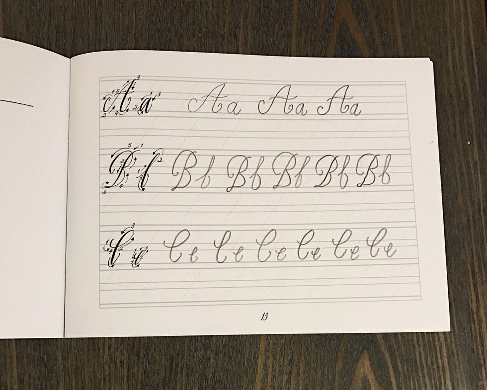 The second time around, I started practicing the letters! She suggests doing them in pencil first to understand how to form the letters. It is very different from normal print or cursive writing. After getting somewhat used to the way to write the alphabet, I was ready to write them with the pen.
